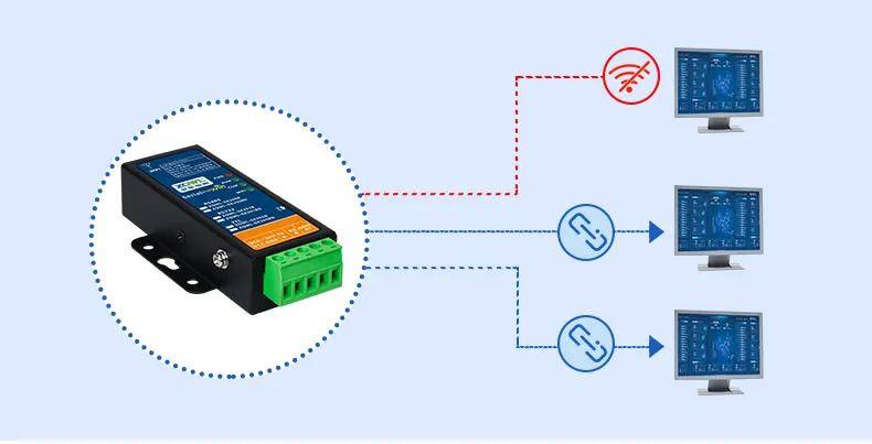 设备内部具有智能的消息排队机制,因此在该模式下,支持多个Modbus TCP主站同时轮询Modbus RTU从站设备。
