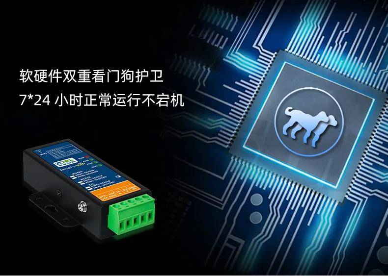 软硬件双重看门狗护卫7*24小时正常运行不宕机。