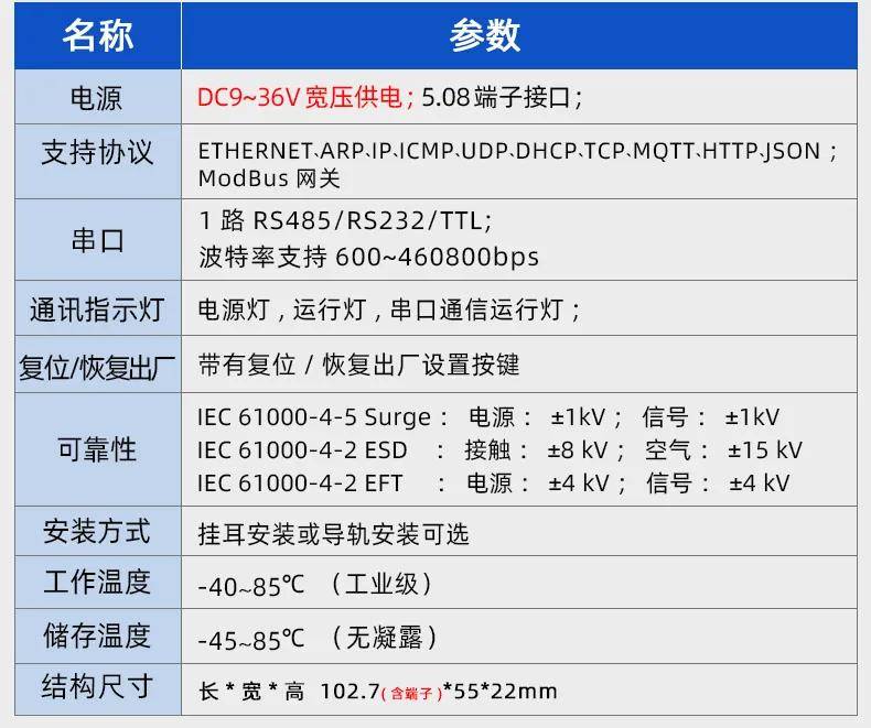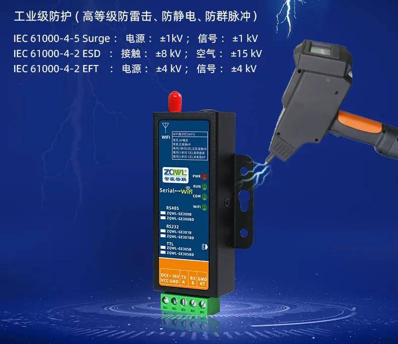 工业级防护(高等级防雷击、防静电、防群脉冲)。