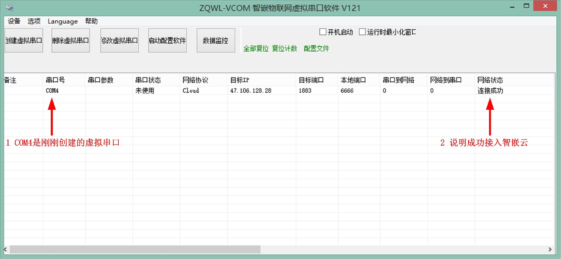 创建虚拟串口并接入智嵌云