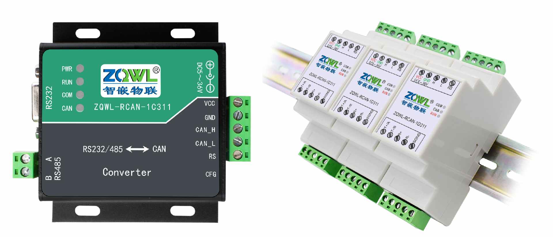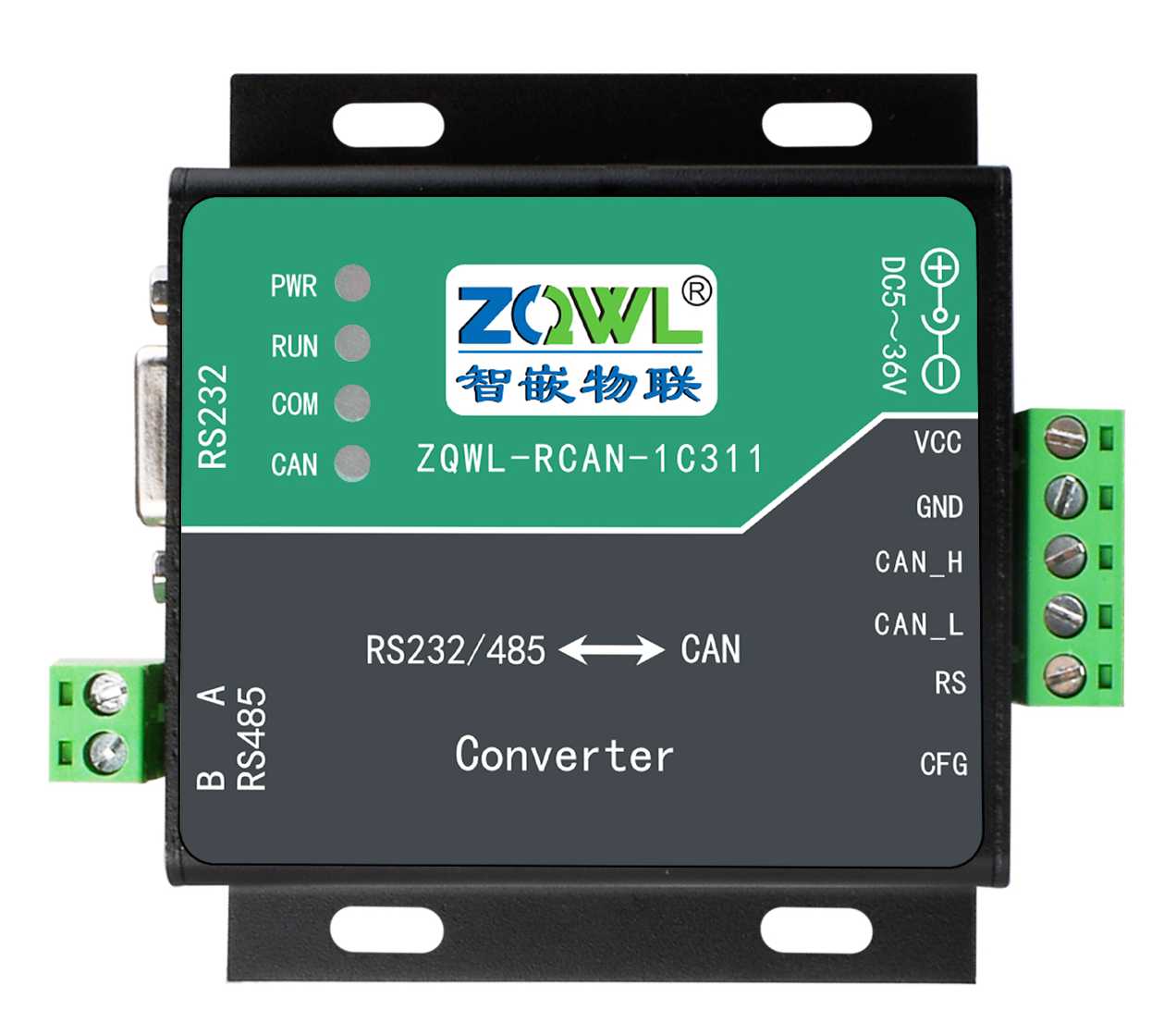 本文以ZQWL-RCAN-1C311为例介绍CAN与串口设备的转换使用说明。