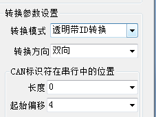 该部分规定了设备的转换模式、转换方向、CAN标识符在串行中的位置、CAN信息是否转串行中以及CAN帧ID是否转串行中等。