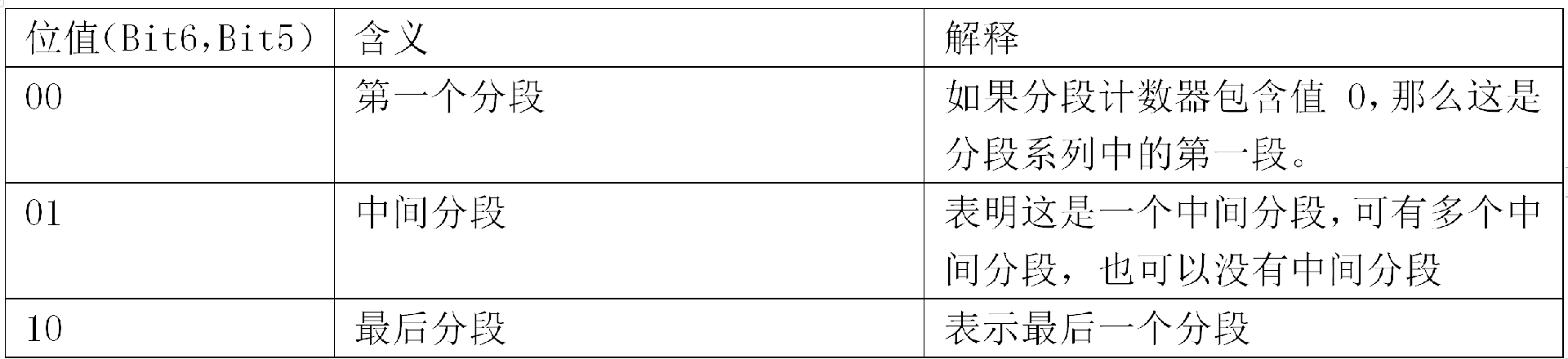 占2个Bit位(Bit6,Bit5),用于表示该报文在分段报文中的类型: